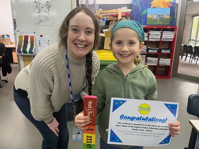 First place winner for the younger age group was Alba from Selby Primary School, who won a Puffing Billy Railway family pass, and LS Constable Prowse said when she visited St Thomas Moore, to give students