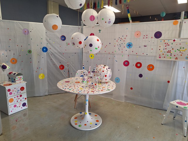The show featured interactive activities such as the Yayoi Kusama-inspired obliteration room, where visitors could cover the white room and furniture with bright, colourful stickers.