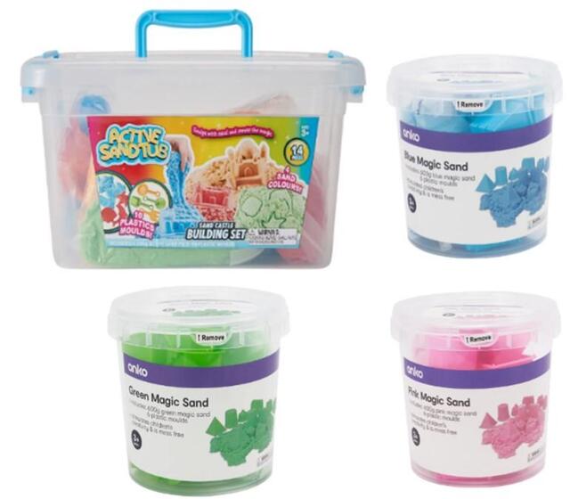 Officeworks issued a further recall for the product Kadink Decorative sand 10g 6 pack on 13 November, and then Kmart issued a recall on 16 November for some variety tubs sold at both Kmart and Target labelled as: Active Sandtub 14 piece Sand Castle Building Set; Blue Magic Sand; Green Magic Sand; Pink Magic Sand.