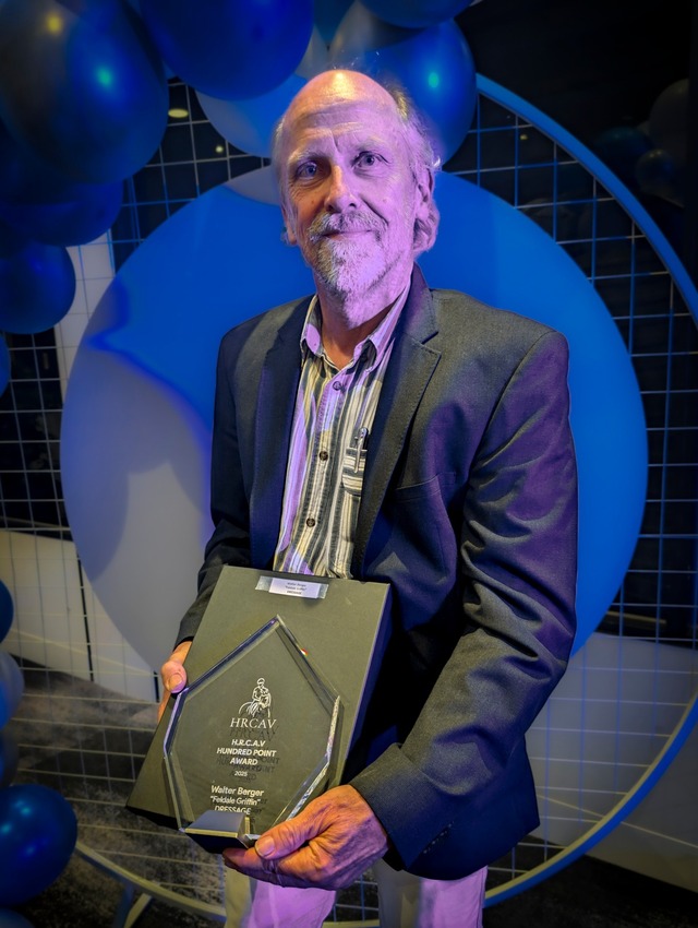 On 15 November, his dedication was formally recognised at the Horse Riding Clubs Association of Victoria (HRCAV) Awards. Walter and Griffin took home a 100 Point Award and a Top Ten Dressage sash.