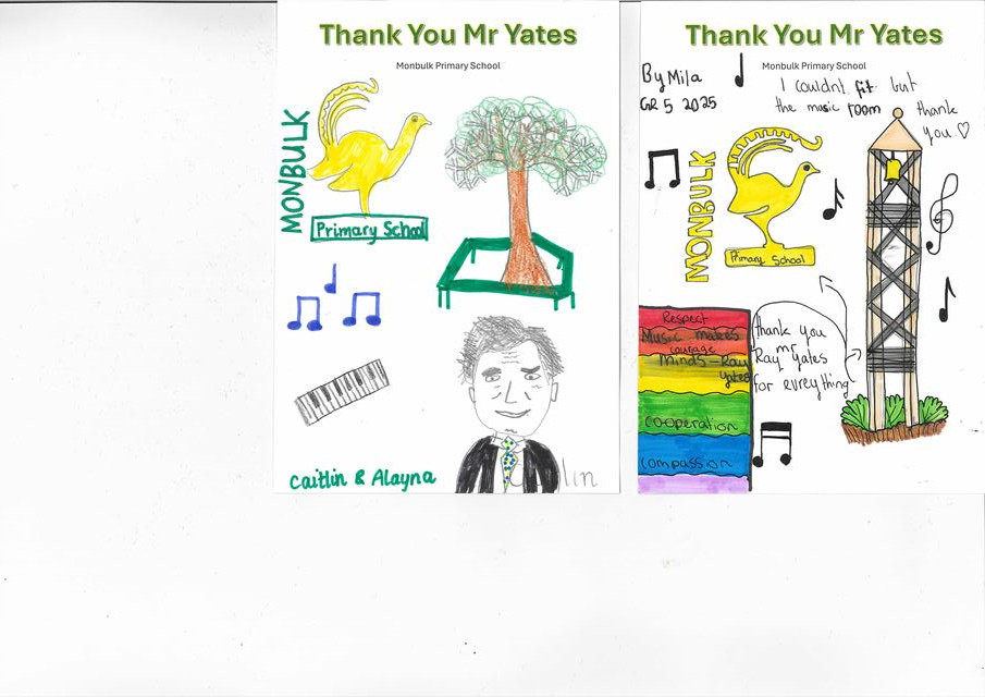 In tribute, students at Monbulk Primary School have created drawings that will be displayed at his memorial service, and the school’s iconic Bell Tower was rung 38 times on Monday, 1 December, once for each year Mr Yates served as school principal.