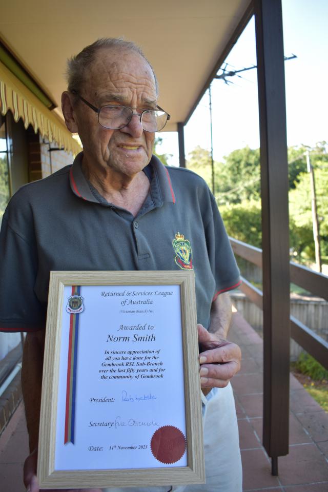 He contributed to local groups, including the Gembrook Memorial Hall and the RSL, and spent 21 years volunteering at the local cemetery.