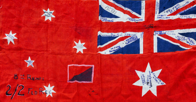 He began his own research after the couple sent through some detailed images. He individually examined each signature and soldier number, many beginning with “VX”, indicating enlistment in Victoria. Malcolm cross-referenced the names through the National Archives to confirm their deployment history. His research pointed to the flag being signed in 1940 or 1941, most likely from the Middle East, but he still needs to find out whether the flag was signed going to or from the Middle East.