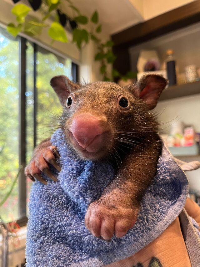 “Every day is different, but I usually wake up to feed the wombats and kangaroo joeys, and baby possums in care, constantly cutting fruit and veg and picking native foliage, then respond to an emergency rescue call out or three, head to work as a vet nurse and come home to bottle feed babies again around the clock,” she said.